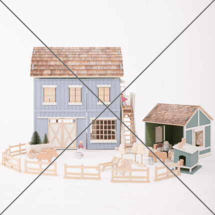 You can order this dollhouse with full pack or just the dollhouse itself. In the full pack option depicted in the visuals, including the barn, coop, 3 horses, 3 cows, 2 rams, 3 chickens, and 3 trees, and trolley are included in the price.